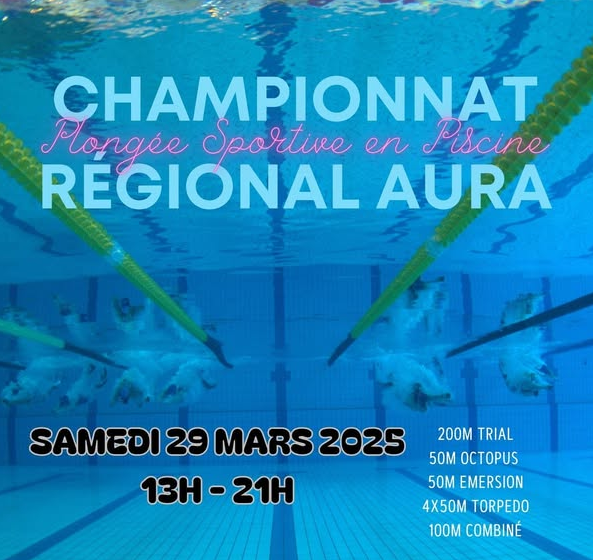 Le Dimanche 30 mars 2025 de 12:00 à 16:00 aura lieu ce championnat du Rhône et Lyon Métropole à la piscine de La Mulatière